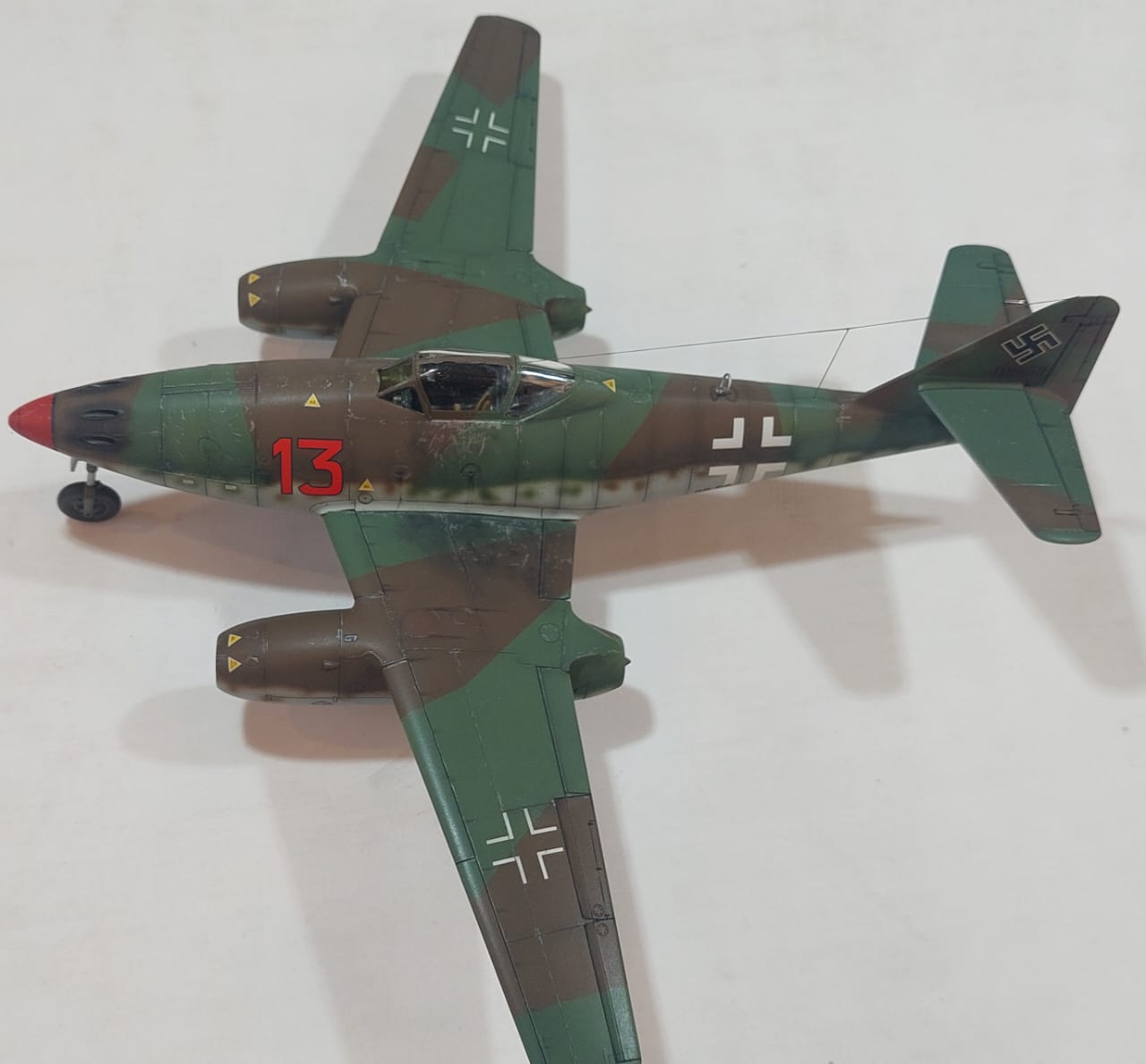 Modelo: Messerschimitt ME-262Marca: TamiyaEscala: 1/48Ubicación y Era: RED 13, HEINZ BÄR, LECHFELD, MARZO 1945Autor: Federico Capelli